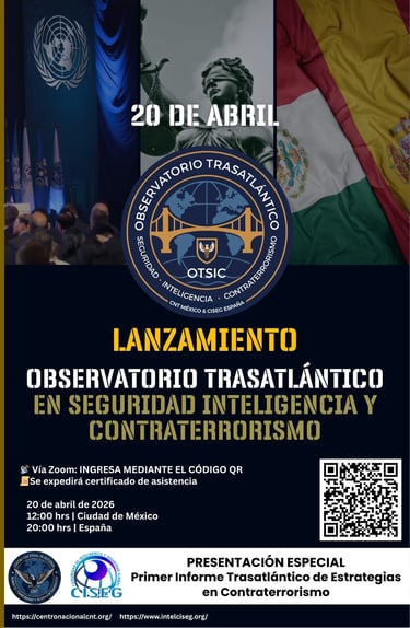 El próximo 20 de abril llevaremos a cabo la presentación de una iniciativa sin precedentes: una plataforma transatlántica establecida entre México y España a través del Centro Nacional de Estudios sobre el Terrorismo y la Comunidad de Inteligencia y Seguridad Global, orientada a transformar la forma en que analizamos, entendemos y enfrentamos el fenómeno del terrorismo y su financiamiento, su convergencia con la delincuencia organizada y las amenazas híbridas.