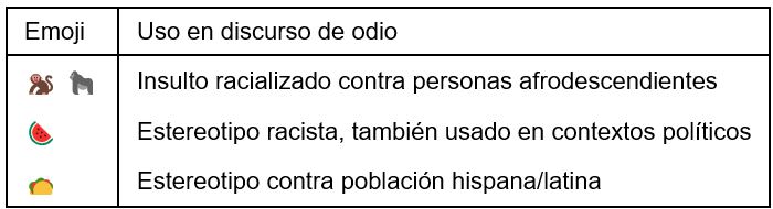 Los emojis funcionan como lenguaje codificado efectivo para evadir moderación automática y construir identidad grupal en procesos de radicalización y reclutamiento.